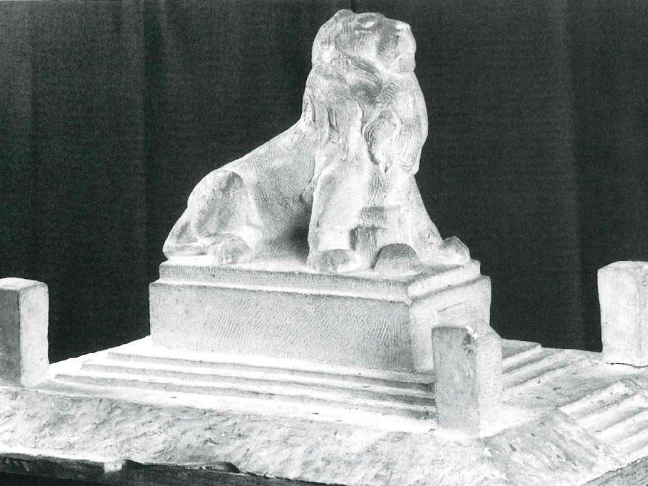 An diesem Stand der Dinge änderte sich in den nachfolgenden Jahren nichts mehr. Erst im Sommer 1933 griff Bürgermeister Dr. Henger sein altes Anliegen wie es heißt, mit der zuversichtlichen Hoffnung wieder auf, die Denkmalfrage nun doch noch regeln zu können. Er schlug dem Gemeinderat vor, dem Denkmal die Gestalt eines großen Löwen zu geben. Er stellte also erneut den Entwurf Sieferles aus dem Jahre 1928 zur Diskussion.[21] Für die Figur rechnete man mit Kosten in Höhe von 6000 Mark, während die Realisierung des Sockelaufbaues mit 2000 Mark veranschlagt wurde. Zur Finanzierung sollten auch die seinerzeit bei der Sammlung aufgebrachten Mittel von etwa 11 000 Mark verwendet werden. Außerdem war vorgesehen, daß die Stadtgemeinde Baumaterialien zur Verfügung stelle.